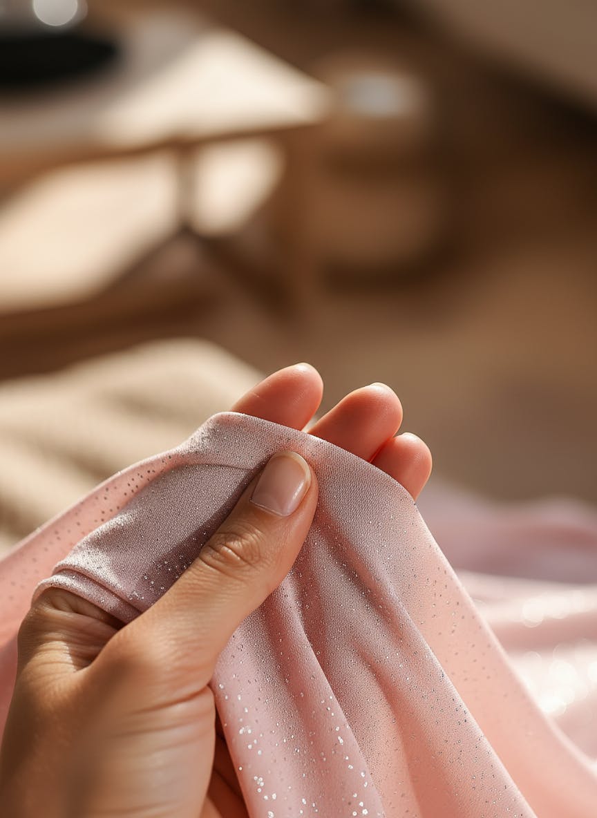 This dress is gorgeous in person. The fabric has a soft shimmer and feels very lightweight. Fit was true to size and extremely flattering